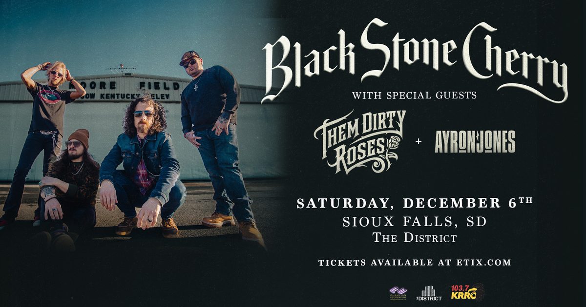 KRRO Presents Black Stone Cherry with special guests Them Dirty Roses + Ayron Jones on Saturday, December 6th at The District.