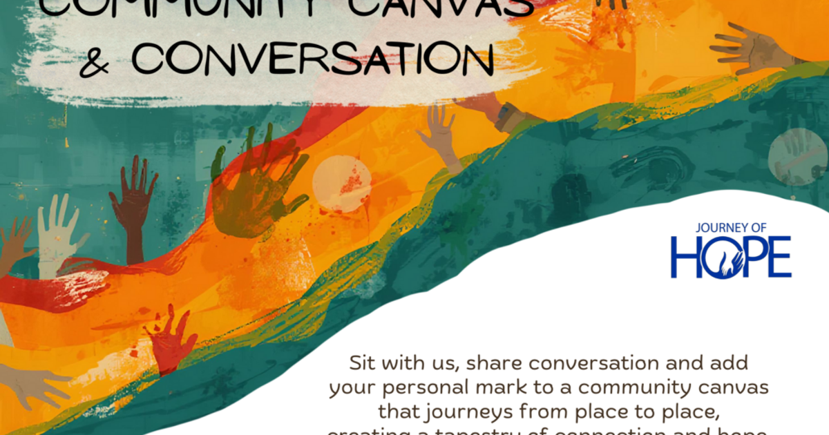 Sit with us, share conversation, and add your personal mark to a community canvas that journeys from place to place, creating a tapestry of connection and hope.